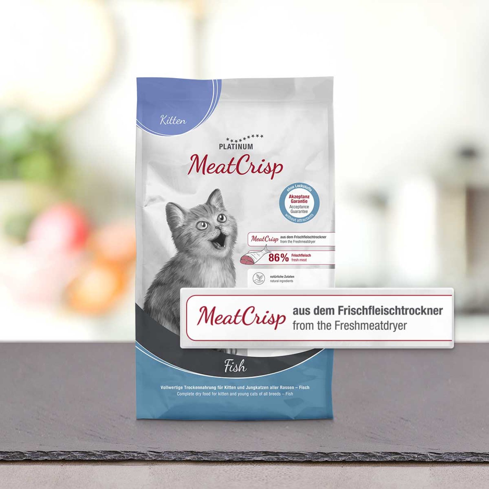 The lowest fresh meat content in MeatCrisp is 82%. This covers the cat's basic need for a high meat content. Cats, unlike other animals, can generate their energy very well from meat, which is why their metabolism is designed for a high meat content.