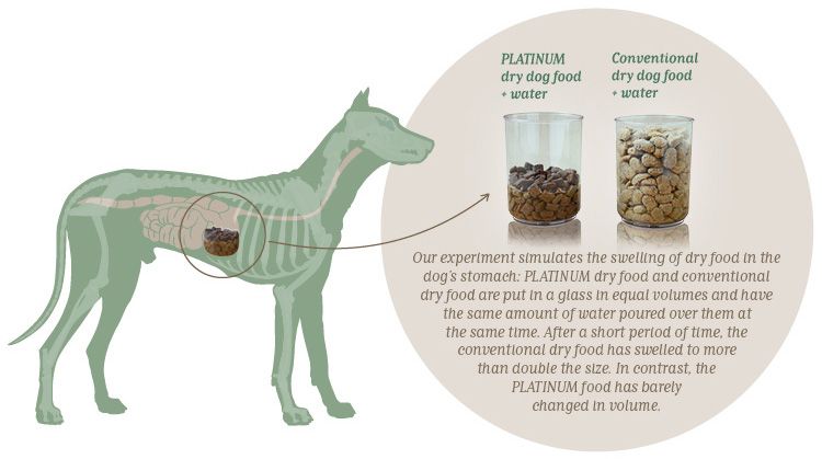 Unlike conventional dry food, PLATINUM dry food does not swell up in the stomach and your dog does not get a bloated belly after eating it. The gastrointestinal passage is much faster – and the stomach is relieved. This significantly reduces the risk of gastric torsion. Even the rest after eating can be significantly shorter.