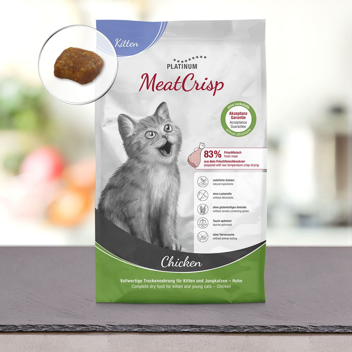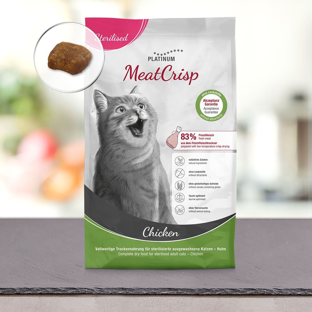 FMD 在低溫和循環空氣下將鮮肉與其他對貓貓健康至關重要的成分一起弄脆。 緩慢而均勻的乾燥過程,除了為貓貓健康提供適當的營養成分外,還保留了鮮肉的天然風味。 因此,即使沒有味精,MeatCrisp 鮮肉脆對您的貓貓來說也非常美味。